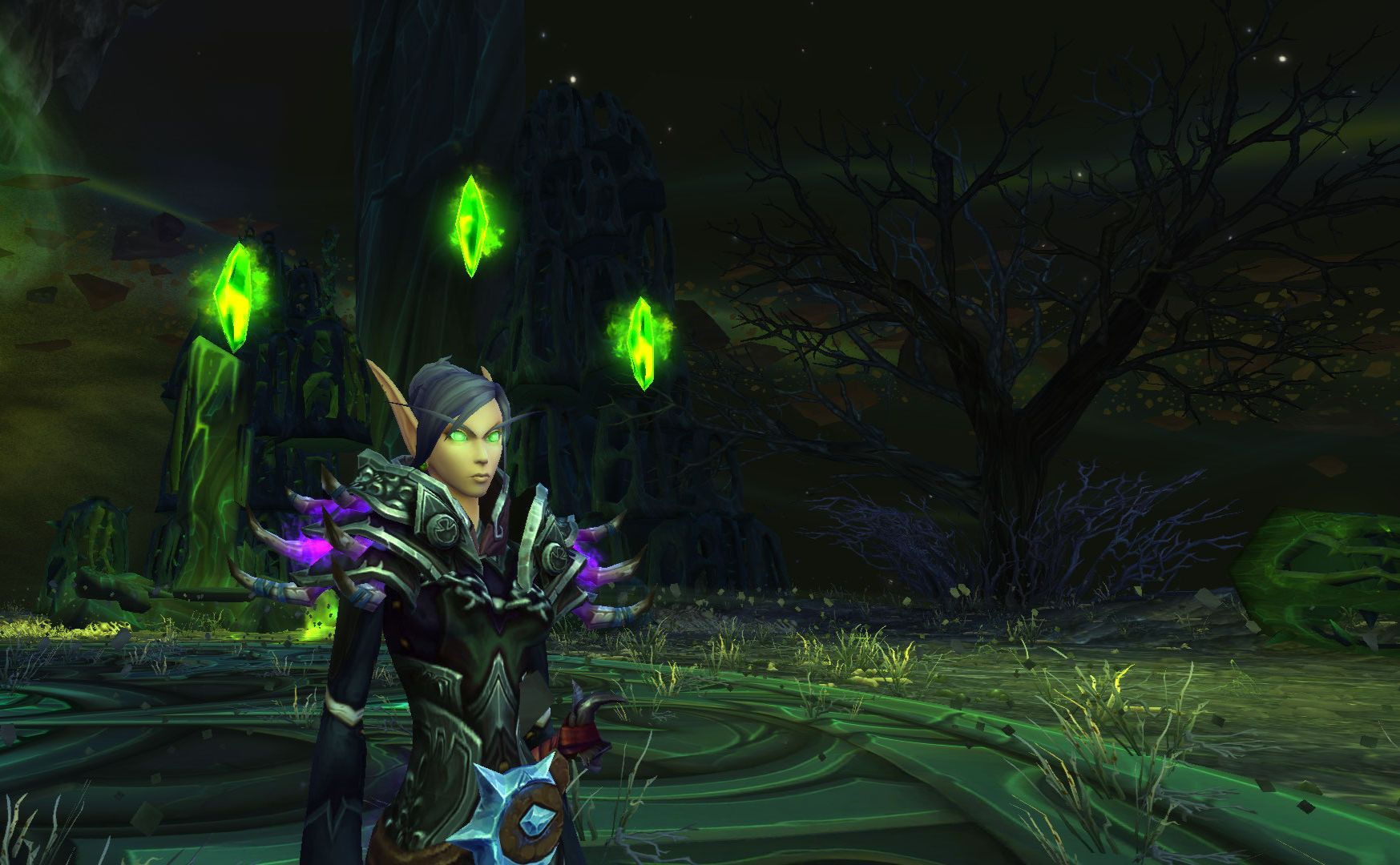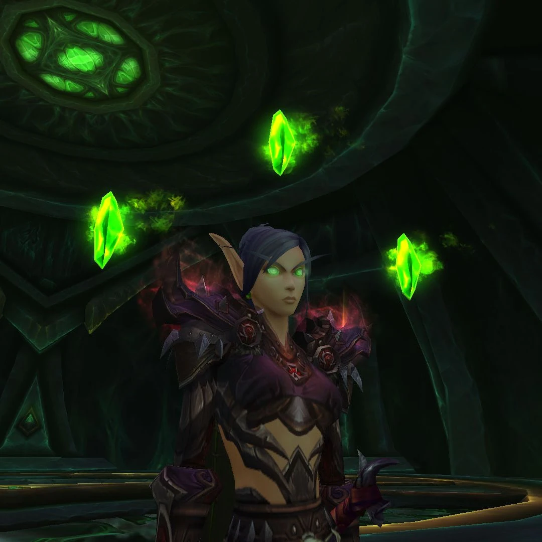 While planning an excursion to the Twilight Highlands in Orgrimmar, Soleindria received a letter from Braelyn Firehand. Braelyn had invited Soleindria to join her in Felwood, a land still corrupted from the Burning Legion’s Second Invasion years ago. Arriving in Felwood, Soleindria and Braelyn met at the Ruins of Constellas, where the druids were fighting the “native” satyrs. Braelyn immediately began probing Soleindria with questions, some about Soleindria’s journey as a warlock, and others about her motivations. After a short while the two began riding to nearby Jaedenar, the largest bastion of the Shadow Council in Kalimdor. The Shadow Council operatives stood aside as the two elves made their way through the kaldorei ruins, coming to a stop at a long corrupted moonwell. At the moonwell Braelyn revealed what Soleindria had long expected. The mage was an agent of the Shadow Council and she (and the Shadow Council) had been watching Soleindria since their first encounter in the Stonetalon Mountains. Braelyn explained the truth behind their mission and the power that could be had by joining the Shadow Council. An offer was being made to join the legendary cult of warlocks, servants of the Burning Legion and chosen of Gul’dan.